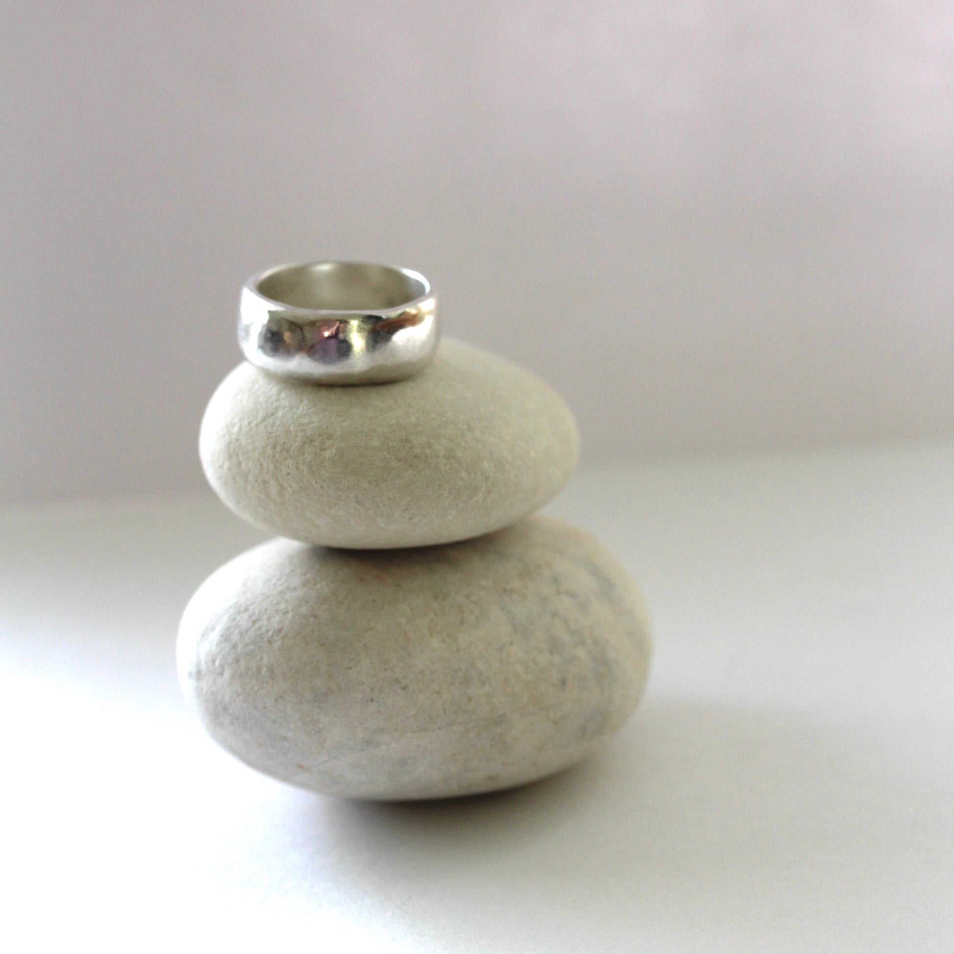 Hand carved sterling silver ring band with a subtly uneven surface. The slightly wavy edge is rounded for comfort.